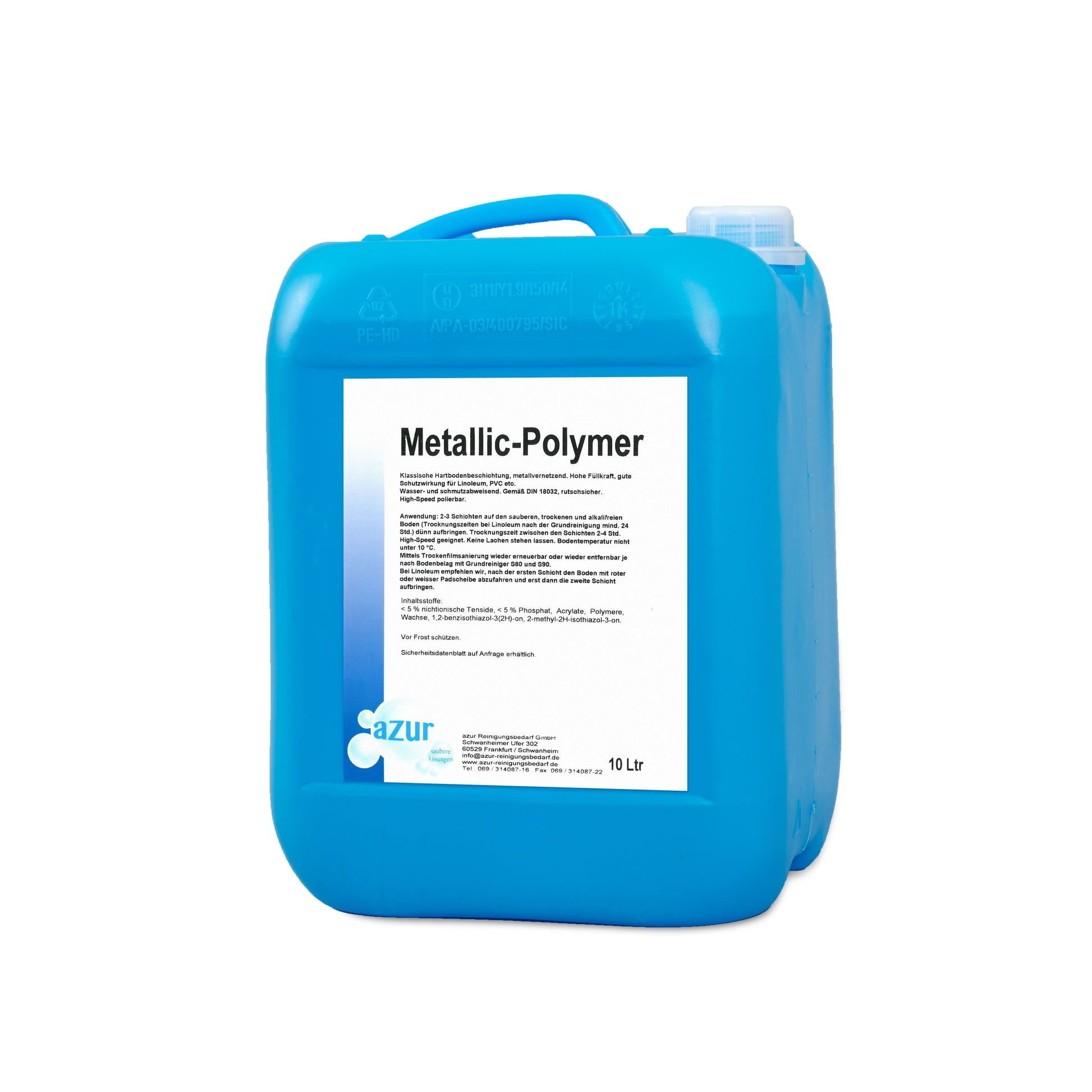 Die azur Metallic-Polymerdispersion bildet einen strapazierfähigen, wischfesten und glänzenden Schutzfilm mit hervorragender Unempfindlichkeit gegenüber Begehspuren und Absatzstrichen. Durch ihre hohe Füllkraft und den gleichmäßigen Verlauf eignet sie sich ideal zur Pflege und Versiegelung von stark beanspruchten Bodenflächen in öffentlichen, gewerblichen und privaten Bereichen. Besonders geeignet für Linoleum, PVC, Steinböden und Kunststeinflächen.